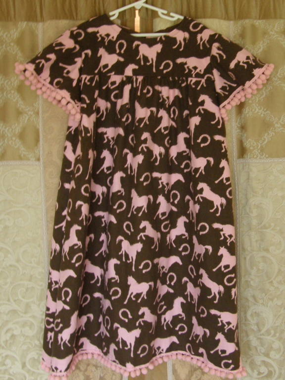 A mother wanted a nightgown for her daughter in a size 10. I went to purchase fabric and the print requested was sold out. Via cell phone pictures we found a new print that her daughter will surely love! |  |