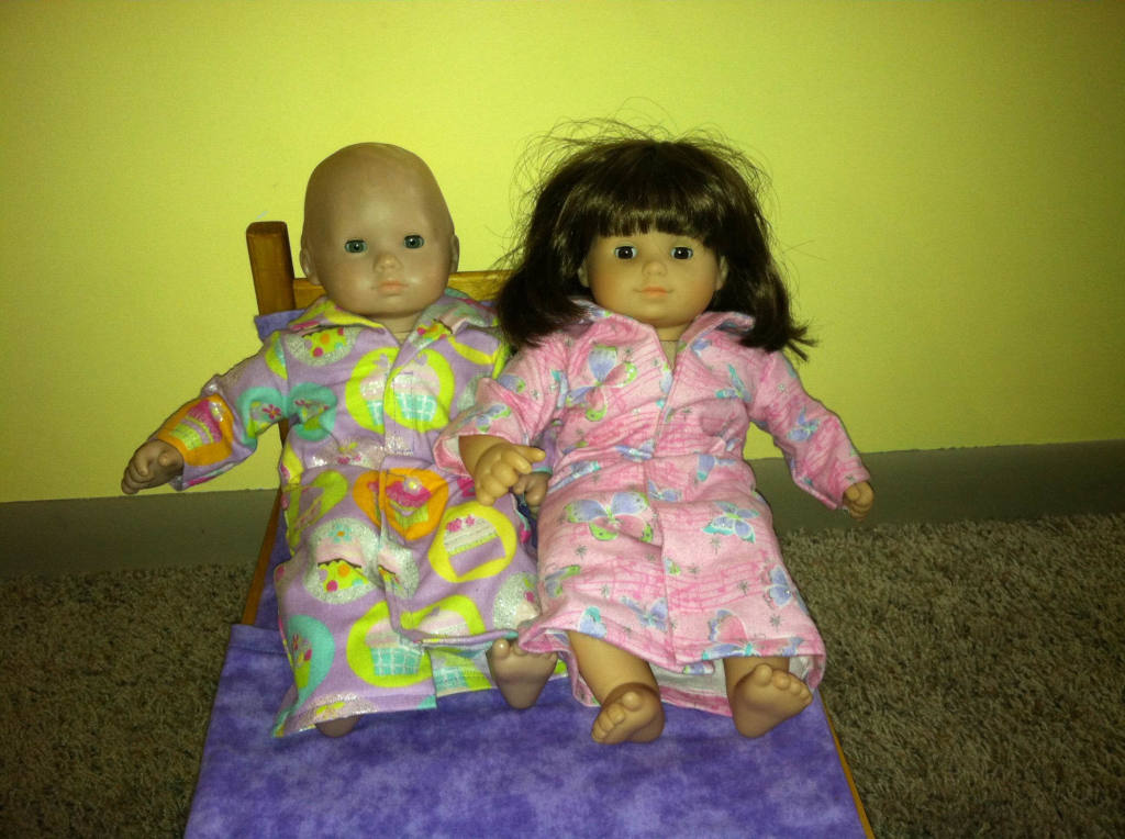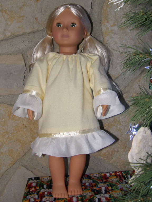 An aunt contacted me to make night gowns for her nieces as Christmas gift. These 15" dolls are all ready for a cold winters night...sweat dreams! |  |