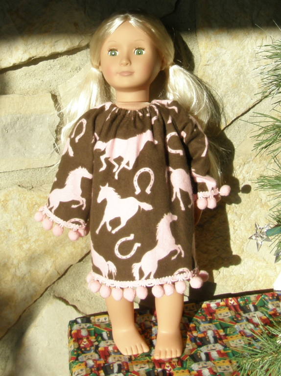 I had enough extra fabric and trim to make a doll nightgown to make the girl's nightgown! |  |