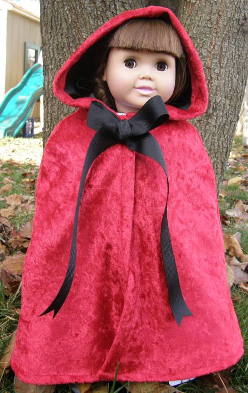 A mom wanted a cape for her daughter's 18" doll. She let me know what color and completion time. This gift is sure to please this Christmas. We at Sunnybrook Studio can almost hear the squeals right now! |  |
